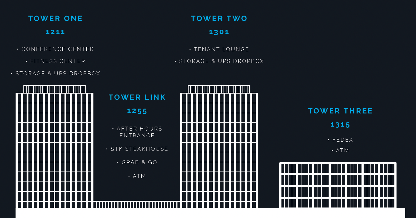 The Property’s efficient and linked design enables every tenant, regardless of size, to feel prominent and immediately connected to the property’s Class A Amenities.